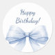Happy Birthday Bow Light Blue elegant Classic Round Sticker
