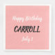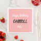 Celebrate the big day with these napkins! The words "Happy Birthday" are followed by your honoree's name and special date. The lettering is in a combination of white and black brushstroke, in a handwritten and hand-printed style, with a pink background. The message, name, and date--and even the colours!--are fully customisable.