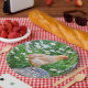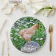 These chicken birthday plates feature a gorgeous Buff Orpington chicken standing on a wooden muchroom surrounded by a garden of daises.