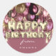 Happy Birthday Burgundy Drips Gold BALLOONS Pink Classic Round Sticker