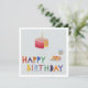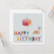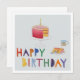 This bright and cheerful card is a print of a handmade collage depicting a birthday cake and a hot drink with fun, colorful lettering.