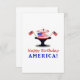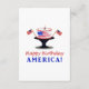 Birthday cake with American. Flags are also to left and right of cake with "Happy Birthday America" written underneath.