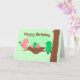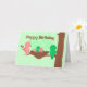 Cute birthday card with daddy bird and three baby birds singing to mommie bird. Father and mommie bird sitting on tree limb, baby birds sitting in nest. Neutral peach, green and brown colours.