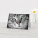 Happy Birthday Card with the face of a black, gray and white tigered cat. Make cat-fans happy on their birthday!
