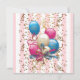 Happy Birthday Card Invitation BalloonsStripe Pink