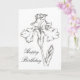 A black pen and ink drawing of an elegant iris flower blooming in spring.