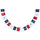 This bunting banner is multicolored blue-red-white by default, great for celebrating just anyone - young or old. But you can easily adjust the colour of each of the 16 flags if you want to change this.