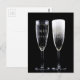Happy Birthday Cheers Black White Champagne Flute Two Glasses Elegant Postcard