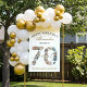 Celebrate a milestone in style with our “Happy Birthday – Cheers to 70 Wonderful Years” personalised banner! This eye-catching design features a festive gold confetti motif sprinkled along the top, adding a joyful sparkle to your celebration. Bold, arched "Happy Birthday" text crowns the banner, making a striking statement that sets the tone for the party. Make it truly special by personalising it with your loved one’s name and 13 of your favourite photo memories artfully arranged inside the number "70" – a unique and meaningful way to reflect on the wonderful journey so far. Whether you’re decorating for a party, a surprise celebration, or a photo backdrop, this banner adds a fun and heartfelt touch to the occasion. Perfect for honouring seven decades of love, laughter, and memories, this personalised banner is a keepsake you’ll treasure long after the candles are blown out. Design and layout by Moodthology Papery.