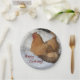This paper plate features a buff orpington hen enjoying the bare ground after some snow melted. Great for birthdays in the winter months!