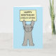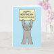 A cute cartoon gray cat holding up a lemon colored sign that says 'Happy Birthday Christopher', against a pastel blue background.