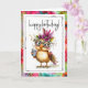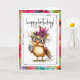 A whimsical birthday chicken dressed in oversized glasses and a floral headpiece holds a cozy cup of coffee to celebrate the day. Bright colors and playful details make this card perfect for coffee lovers, fun loving friends, and anyone who enjoys a cheerful birthday surprise.