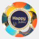 Happy Birthday Colourful 80's Retro Abstract White Classic Round Sticker
