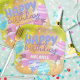 Cute personalised birthday paper plate design showcasing charming illustrated balloons and enchanting sparkles set against a vibrant backdrop. The best part? You have complete control to customise every aspect, from the text to the colour of the balloons, using our convenient Edit tool.