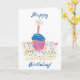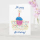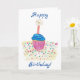These birthday cards feature my colourful painting of a cupcake with blue icing, frosting, with a pink wrapper. There is a star candle in the cupcake and a confetti design on the table cloth. It comes with a verse that can also be easily personalised on the template form. Thank you for shopping CherylsArt on Zazzle.