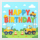 Happy birthday construction builder theme with little builder vehicles and hat.