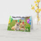 Fun Happy Birthday card of an illustrative photo artwork of a funny, cute corgi dog and teddy bear with party hats and balloons. Great card for son or daughter as you can change name on front. You can customise the text and message inside with your personal text.