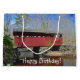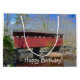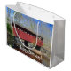 This large gift bag features a red covered bridge in the woods of Connecticut.