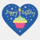 Happy Birthday Cupcake Blue Heart Sticker