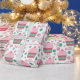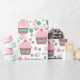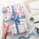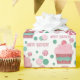 This delightful birthday present wrapping paper is so fun with it's design of pink frosted cupcakes, red and white swirled candies, and green and pink polka dots. The words Happy Birthday are also a part of the pattern.