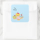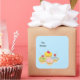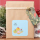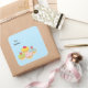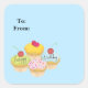 Square peel and stick gift tag has a blue background colour along with multicolored cupcakes and a happy birthday written on them.