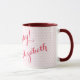 Create your own custom name, personalised Happy Birthday, elegant dark pink typography script, modern cool chic stylish geometric trendy light pink triangles pattern background, classy, tea coffee cocoa mug. Simply type in your greetings / wishes, and the recipient's name, to customise. Makes a great gift for birthday, graduation, valentines day, christmas, holidays, and more, for your loved ones, girlfriend, boyfriend, son, daughter, kids, wife, husband, mum, dad, bff, friends and family.