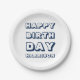 Happy Birthday Custom Name navy blue and white Paper Plate