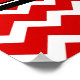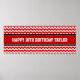 Customisable name and age happy birthday banner poster in fun and bold bright red, black and white retro chevron zigzags stripes pattern.