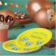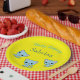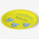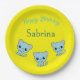 Happy birthday cute bouncy blue kittens yellow paper plate