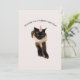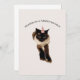 Light pink Happy Birthday card with cute siamese realistic cat in party hat.