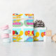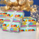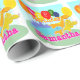 Happy Birthday Cute Cartoon Dinosaurs and Balloons Wrapping Paper for Kids with fully customisable name "Samantha" and age "5" years. Cute blue Stegosaurus, orange Diplodocus and yellow Triceratops cartoon dinosaurs and colour balloons with text "Happy Birthday" and fully customisable age "5" dinosaur girly paper wrap for gifts and presents. This colourful cartoon dinosaur happy birthday wrapping paper is fully customisable, change name and age and add your text and images! Adorable wrapping paper for the big little dino fan on a dinosaur themed birthday party!