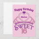 Personalised pretty sweet sixteen happy birthday card with a pink tiara topped with a purple heart and your teenage girl's name inside of it. Cute Sweet Sixteen written in beautiful script for your princess who deserves a royal crown.