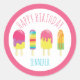 Happy birthday cute pink Popsicle party kawaii Classic Round Sticker