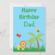 A lovely birthday card for dad, this design features a cute safari scene using a light blue background with a butterfly, bumble bee and a lion under palm trees. There is also green grass. The back features a personal photo with a template for signing it underneath. Order yours today!