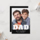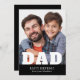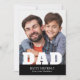 Happy Birthday Dad Modern Personalised Photo Greeting Cards. This modern design features a "DAD" white text overlay on your favourite photo on a black background with the editable text "Happy Birthday (your text and name)" is written in modern typography. Personalise the text by editing the text box.