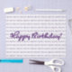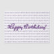 "Happy Birthday!" tiled in dark royal purple casual script, on a white background, or select a background colour of your choice.