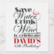 Save water, drink wine hand lettered quote designed to encourage the Birthday celebration of a friend, spouse or colleague. Name and age is to be personalised. Size, placement, style of letters can also be personalised if you enter the design area.