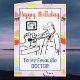 Doctor is using his stethoscope on a patient's feet. Personalise with your own details and message. Cupcakes background. Ideal funny birthday card for a Doctor.