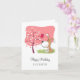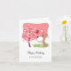 Happy Birthday Dog Puppy Bird Flower Blooming Pink Card