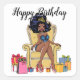 Stickers for a drag queen's birthday. An African-American tranny with a tiara on surrounded by balloons and gifts. seal birthday party invitations or birthday bag favour bags with this cute birthday stickers.