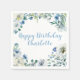 Happy Birthday Elegant Blue White Floral Party Napkin