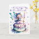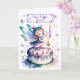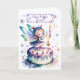 This design has been expressly created for girls birthday. It's a lovely illustration of a pretty little fairy upon a birthday cake trying to adjust the candles on it.