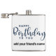 Make their birthday unforgettable with this stylish personalised stainless steel flask! Featuring a sleek "Happy Birthday to You" design, this flask allows you to add your friend's name, creating a unique and thoughtful gift they’ll cherish. Ideal for celebrating milestone birthdays or simply showing someone how special they are, this flask is both practical and sentimental.