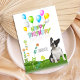 Celebrate a special birthday with this cheerful card featuring a cute French Bulldog sitting in a field of flowers under a sky of colourful balloons. This delightful design is perfect for Frenchie lovers and anyone who enjoys a bright and happy birthday greeting.