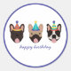 Happy Birthday French Bulldog Party Hats Classic Round Sticker