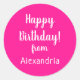 Happy Birthday from Name Hot Pink Birthday Classic Round Sticker