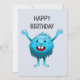 The little blue creature says happy birthday.