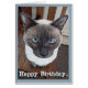 Big headed Siamese cat sitting in a chair is featured on this funny Happy Birthday greeting card. Art, image, and verse © Shoaff Ballanger Studios, 2023.