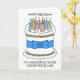A cartoon illustration of a cake covered in lit candles and accompanied by the words 'Happy Birthday to a wonderful future daughter in law'.