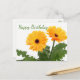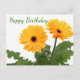Brighten someone's birthday with this vibrant yellow orange and green gerbera daisy flower Happy Birthday card. Floral birthday postcards are the economical alternative to expensive birthday cards when you want to send a quick note.